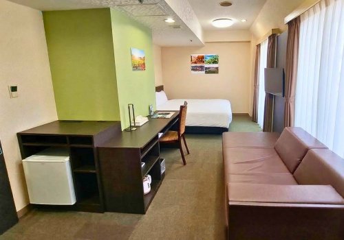 Двухместный номер с одной кроватью (17㎡): также оснащён двуспальной кроватью шириной 147 см. Компактный, но функциональный и комфортный — идеально для размещения двоих.